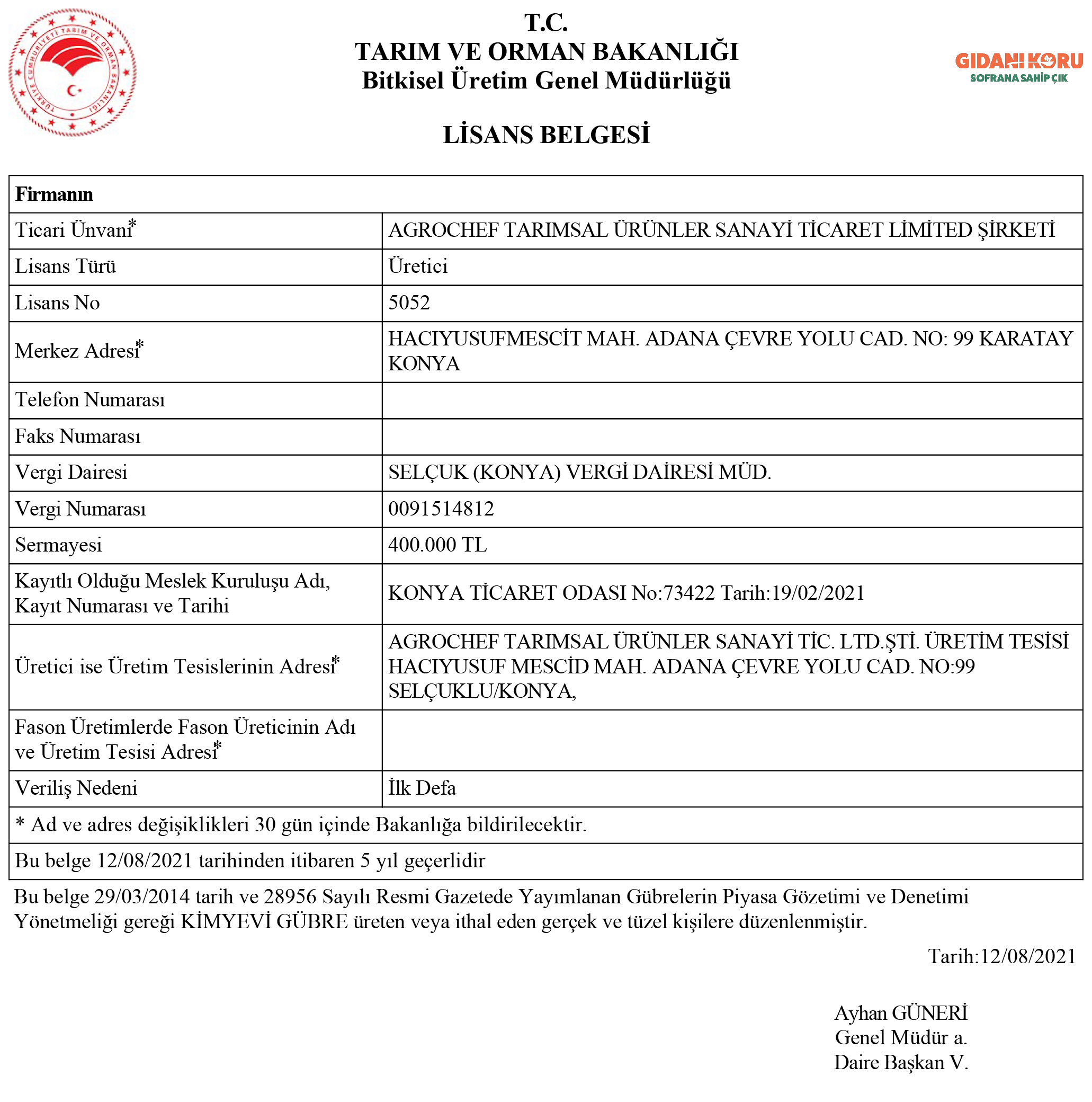 1999 yılında tarım sektöründe orta ve büyük ölçekli projelerin geliştirilmesi, ülkemize yeni tarım teknolojilerinin getirilmesi ve teknolojideki son yenilikleri takip ederek tarım sektörümüzün çağdaş düzeye ulaşmasına katkı sunmak amacıyla Konya’da kurulmuş olan Agrochef Tarımsal Ürünler, kuruluşundan beri süregelen profesyonellik, yaratıcılık, dürüstlük ve pazarı geliştirme özellikleriyle istikrarlı bir büyüme göstererek Tarım dünyasında saygın bir yer edinmiştir.